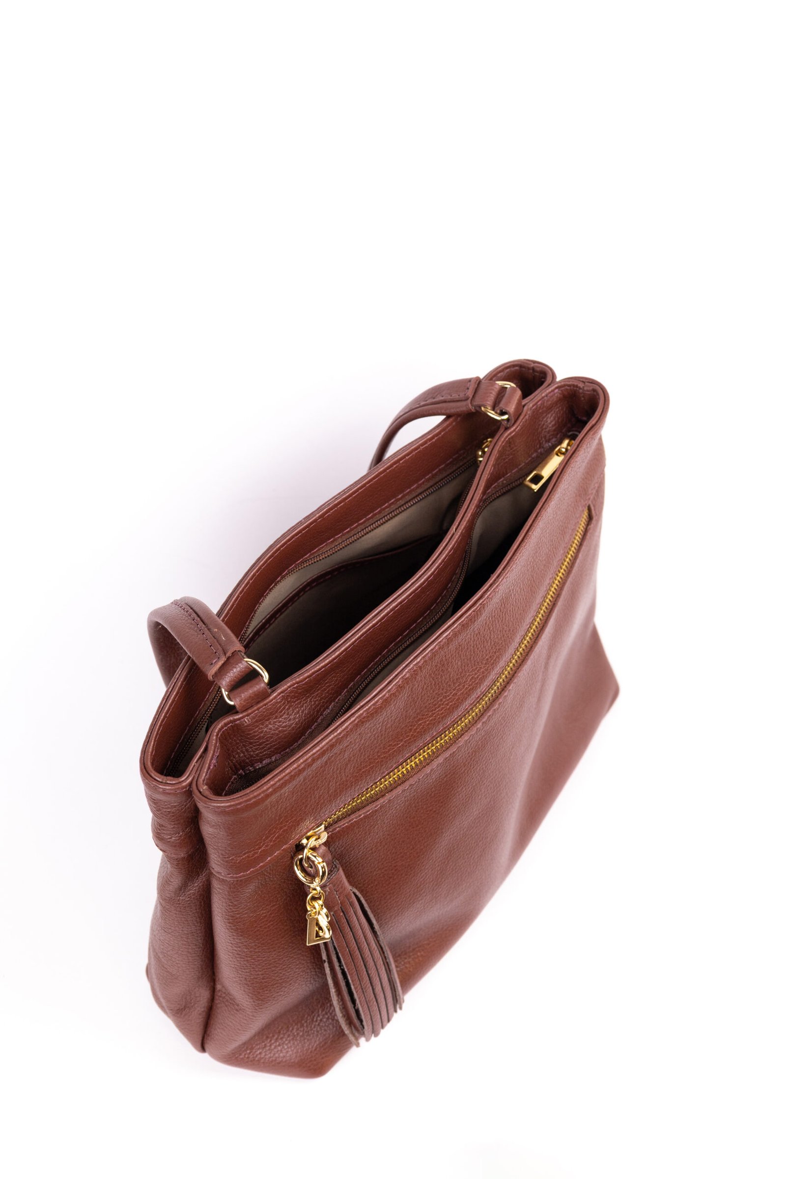 Confeccionada em couro legítimo selecionado, a Elly surpreende pelo peso reduzido: apenas 400g. Esse diferencial é essencial para quem busca uma peça que não sobrecarregue os ombros. O contraste do tom Castanho com os metais dourados confere uma estética moderna, solar e refinada, elevando o status de qualquer produção.
